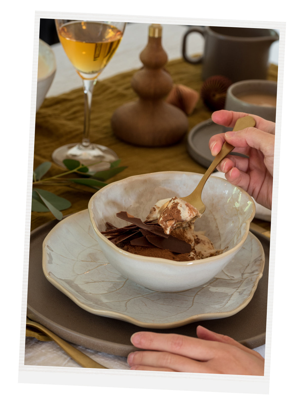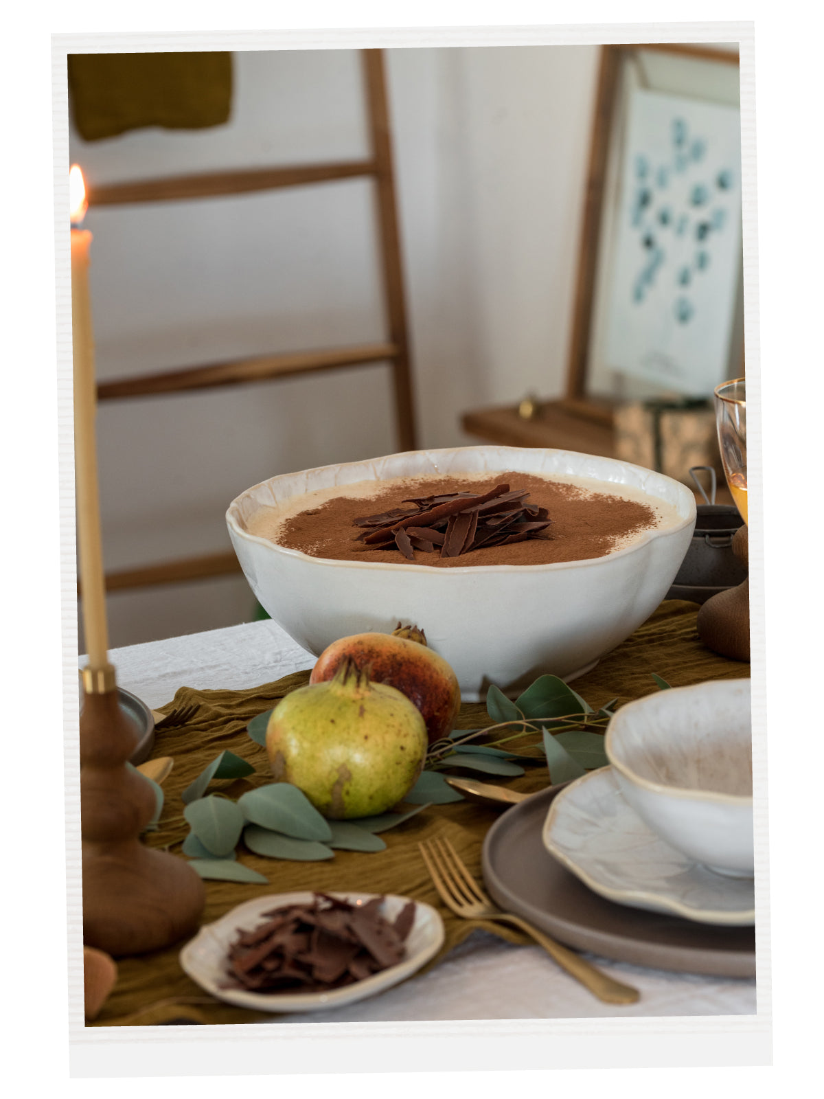 We love gathering around a beautiful table, sharing life, family traditions, and cherished recipes. It is a season of joy, peace, love, and all things sweet. This Chocolate Tiramisu is the perfect dessert for your holiday table, dressed in COSTA NOVA’s linens and tableware. Enjoy it sprinkled with cocoa and chocolate shavings and make your celebrations even more special.