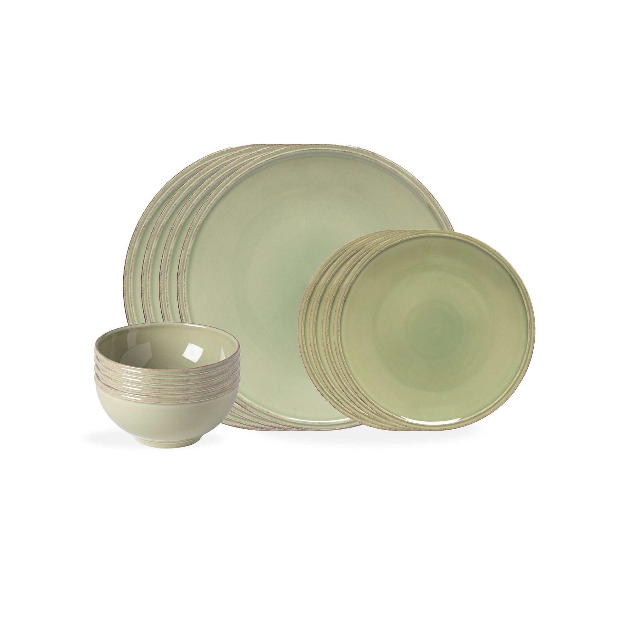 El set incluye 4 platos llanos, 4 platos de postre y 4 bowls para sopa/cereales, ideal para servir a 4 personas.