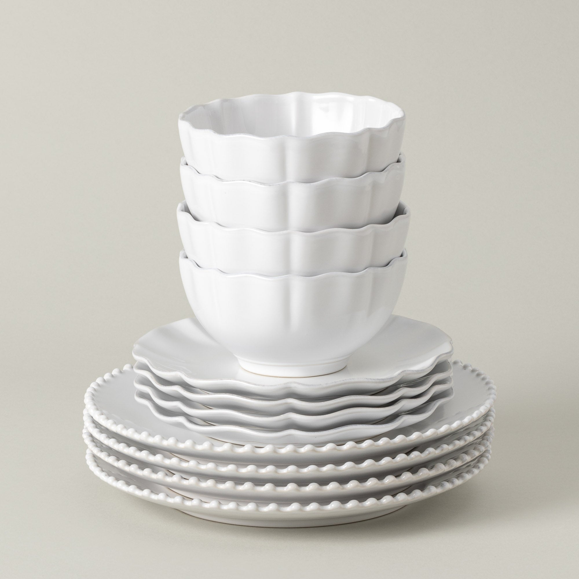 Set Vajilla 12 Piezas con Bol Pearl | Rosa