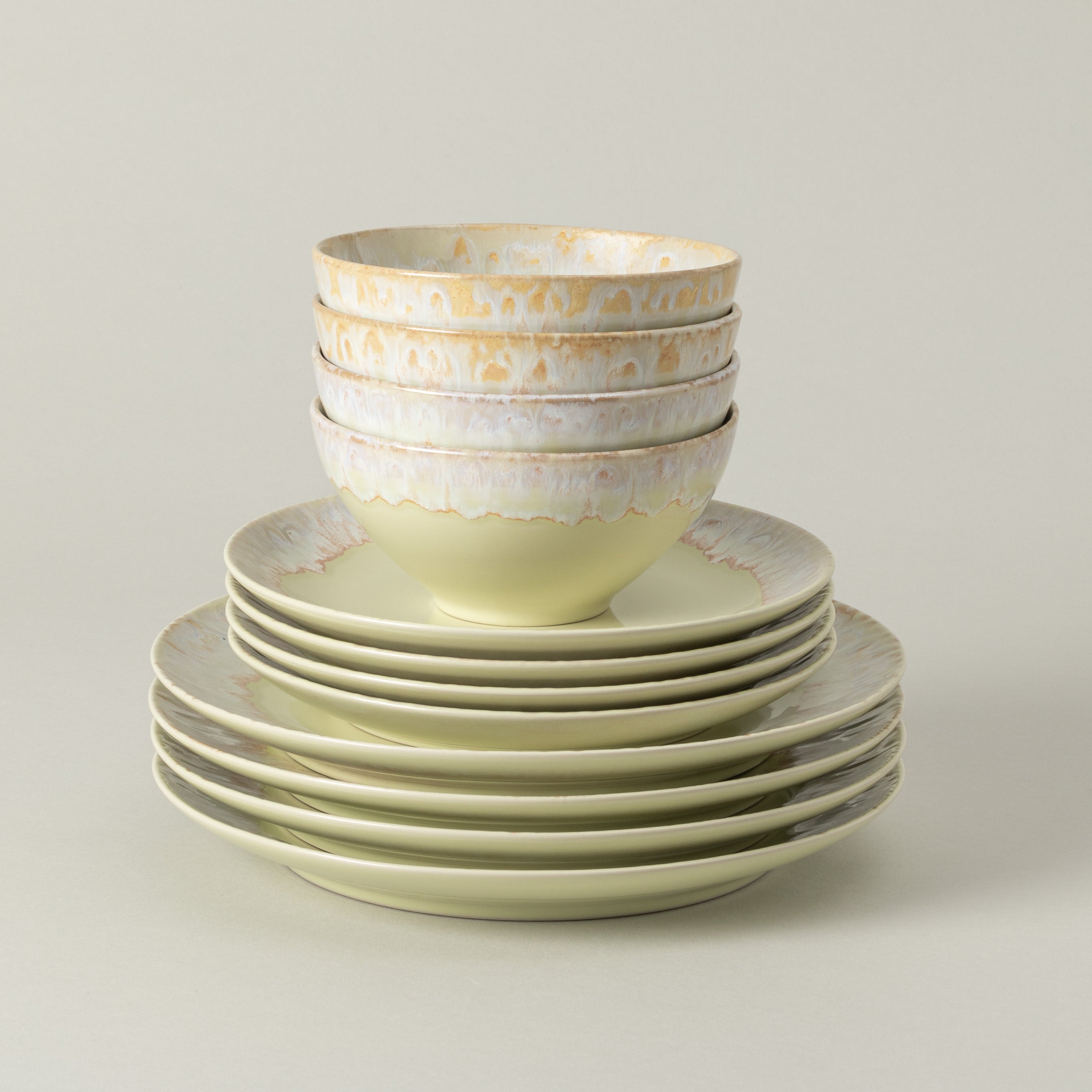 La colección Taormina se inspira en la estética contemporánea, ofreciendo un enfoque moderno para la mesa del día a día. Producida en gres fino, se distingue por su vidriado brillante con acabado reactivo, que da lugar a combinaciones de colores y efectos exclusivos en cada pieza.