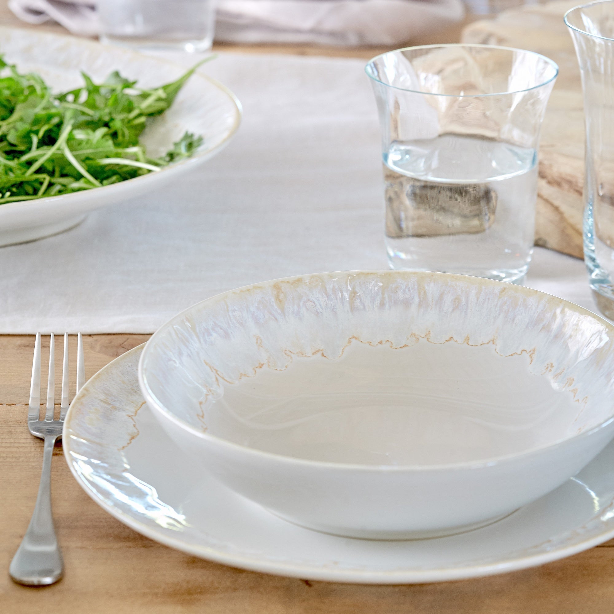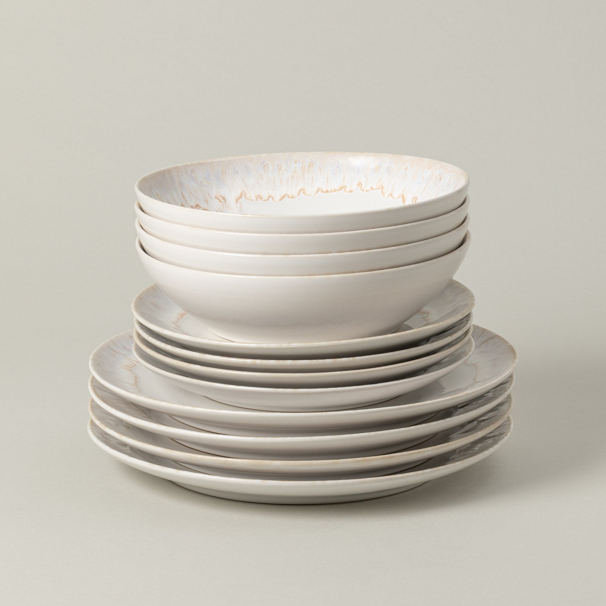 The Taormina collection is inspired by contemporary aesthetics, offering a modern approach to everyday dining. Made of fine stoneware, it stands out for its shiny glaze with a reactive finish, resulting in unique combinations of colors and effects in each piece.