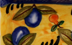 Piezas hechas y pintadas a mano en Portugal. Pequeñas variaciones de color y diseño son normales. Al ser un material de baja cocción, tiende a craquelarse con el uso repetido – fenómeno natural que no afecta su funcionalidad.
