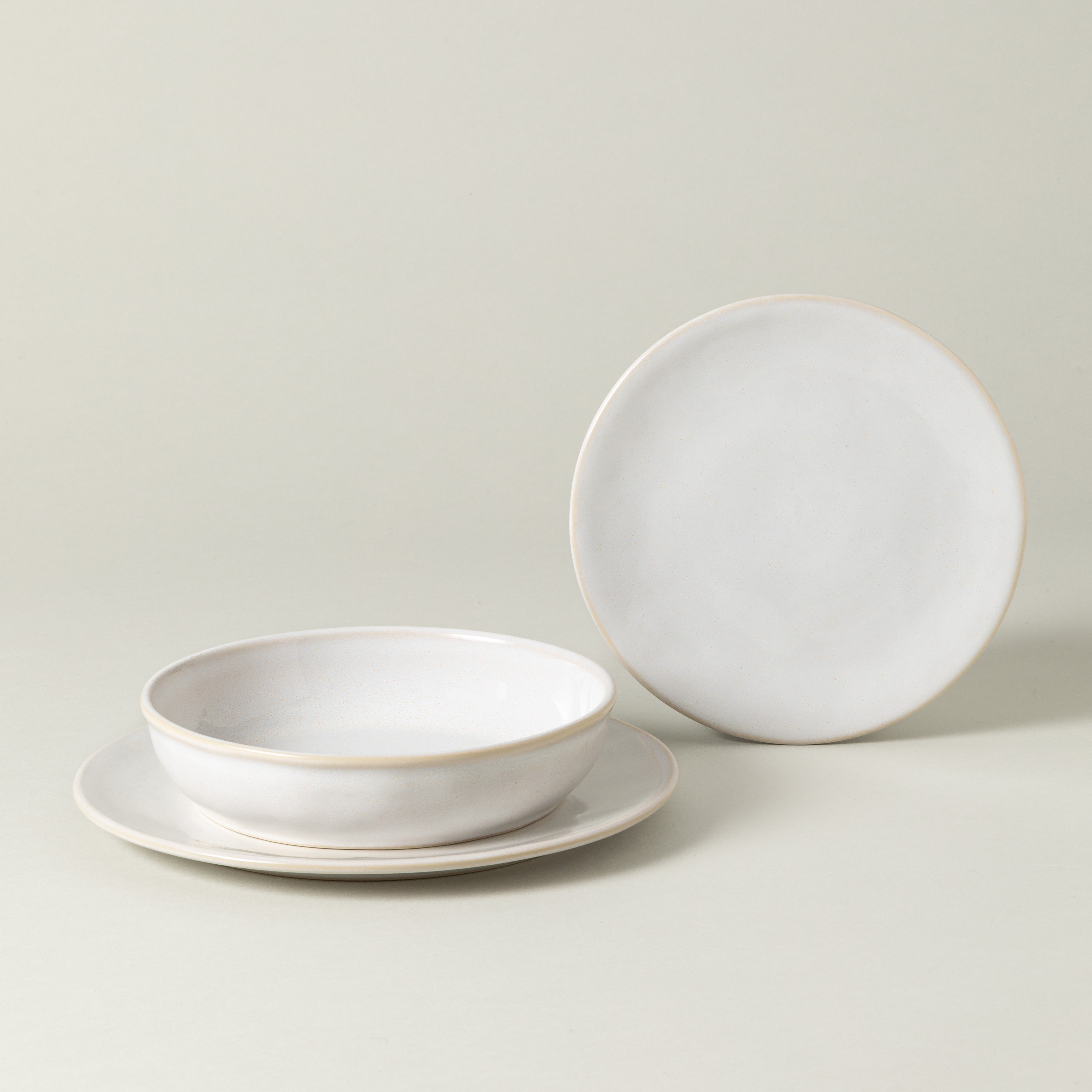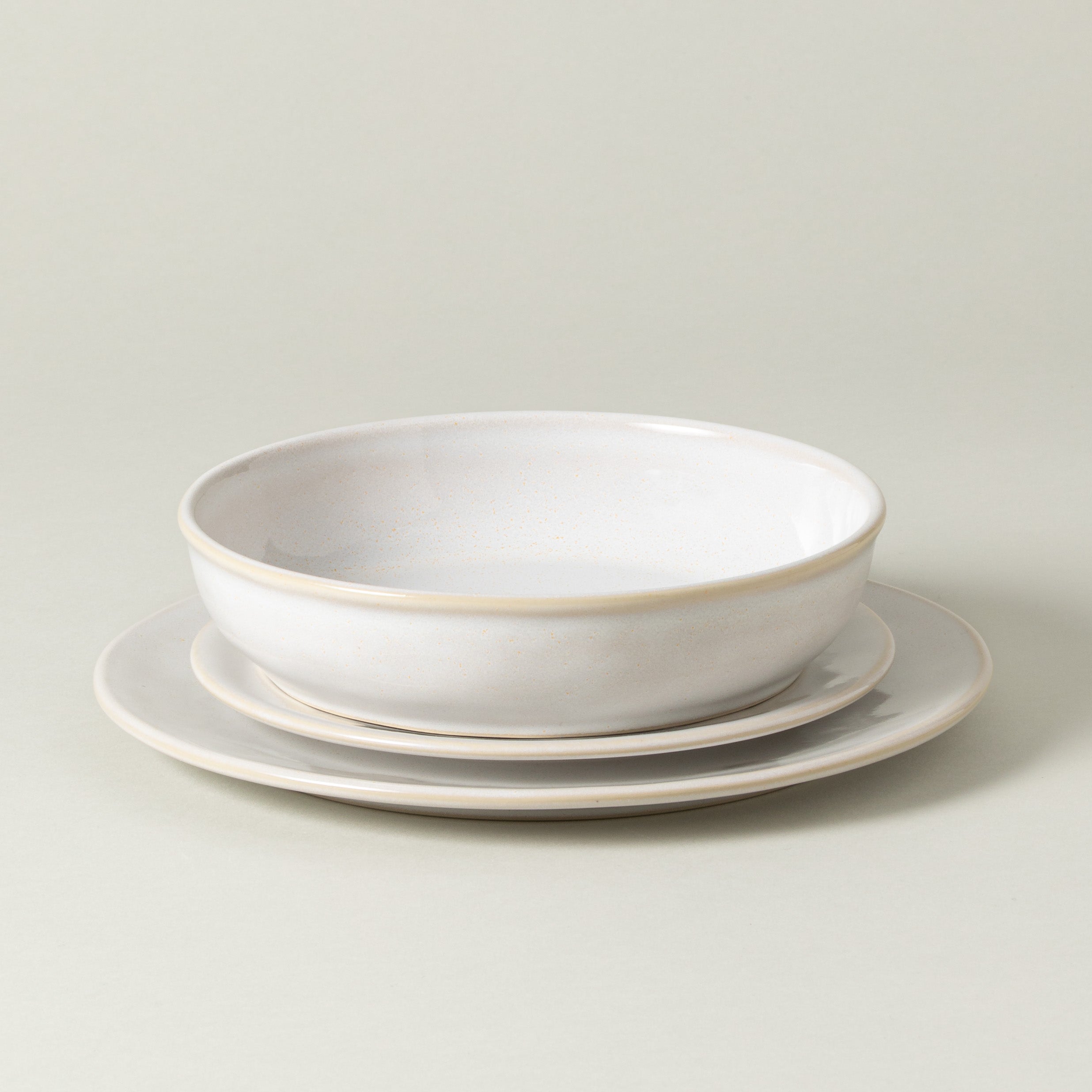 Dinner plate – D27.7 H2 cm, Pasta bowl – D21.4 H4.3 cm | 32.6 cl, Salad/dessert plate – D21.9 H2.1 cm