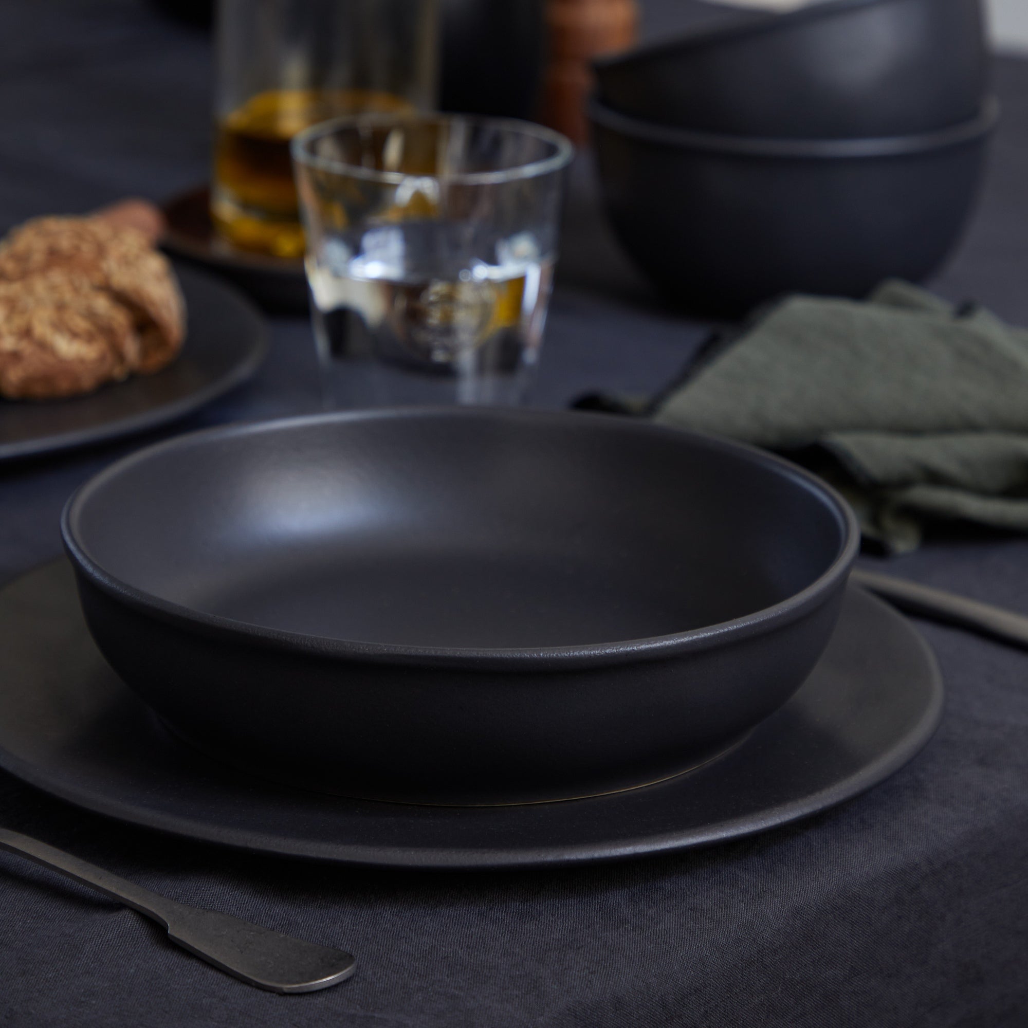 Dinner plate – D27.7 H2 cm, Pasta bowl – D21.4 H4.3 cm | 32.6 cl, Salad/dessert plate – D21.9 H2.1 cm