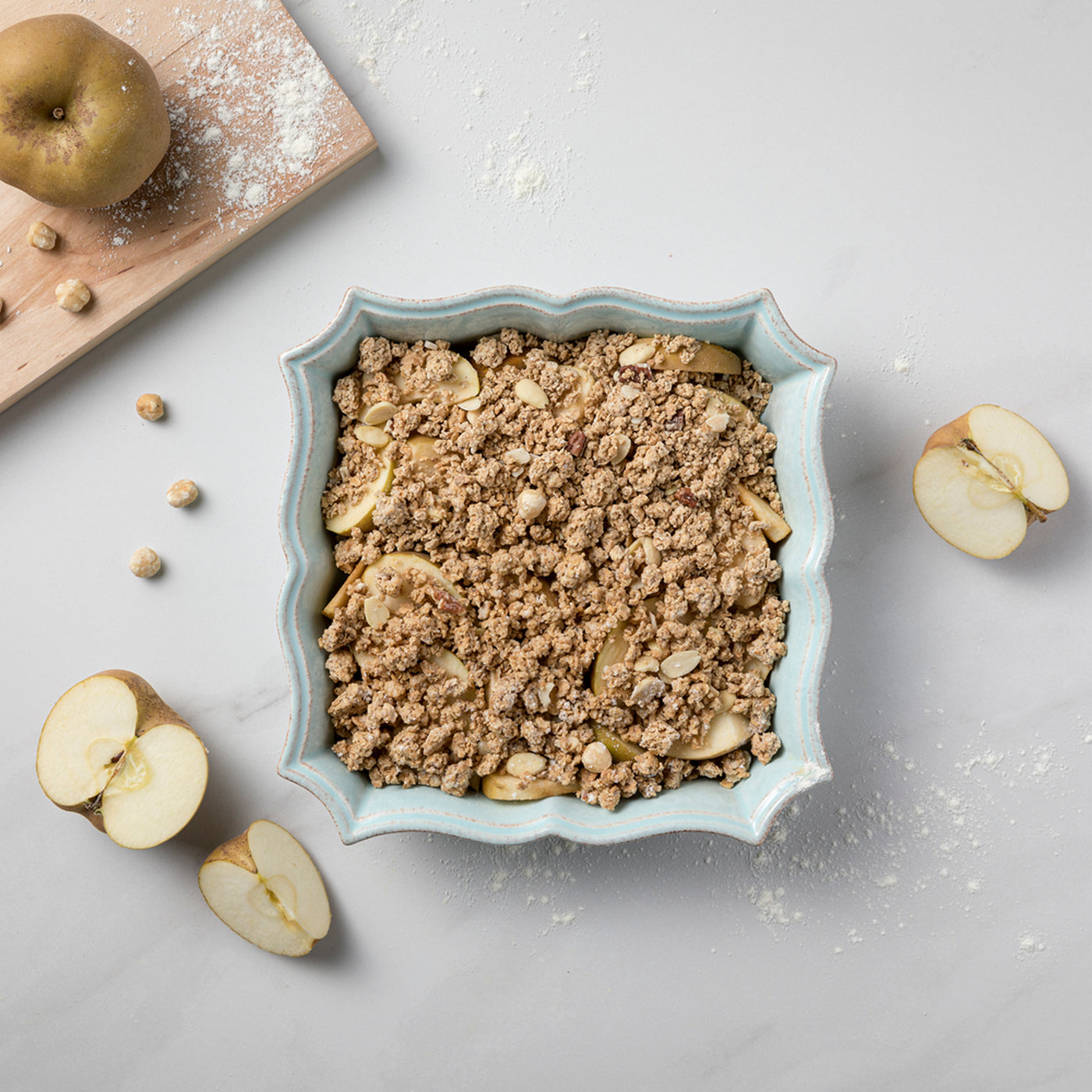 - Available in white and blue, across a wide range of pieces and formats.