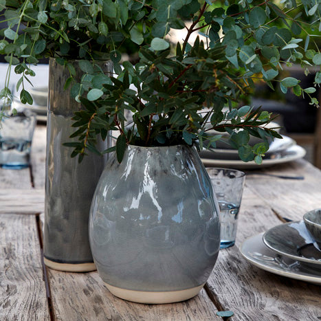 The Madeira Large Cylinder Vase is crafted from fine stoneware and hand-finished. Drawing inspiration from nature, the Madeira collection showcases a captivating crackled surface, reminiscent of sunlight filtering through leaves.