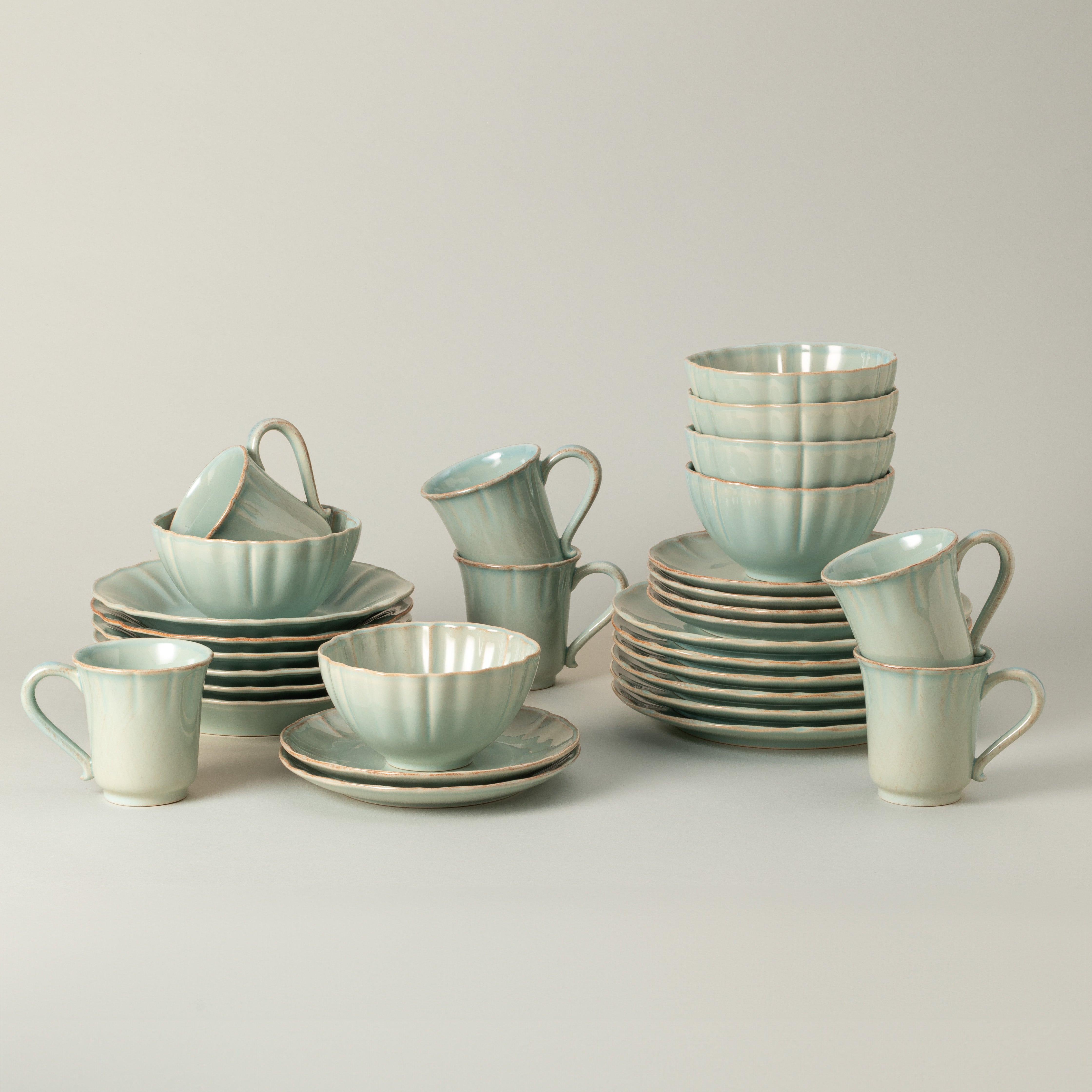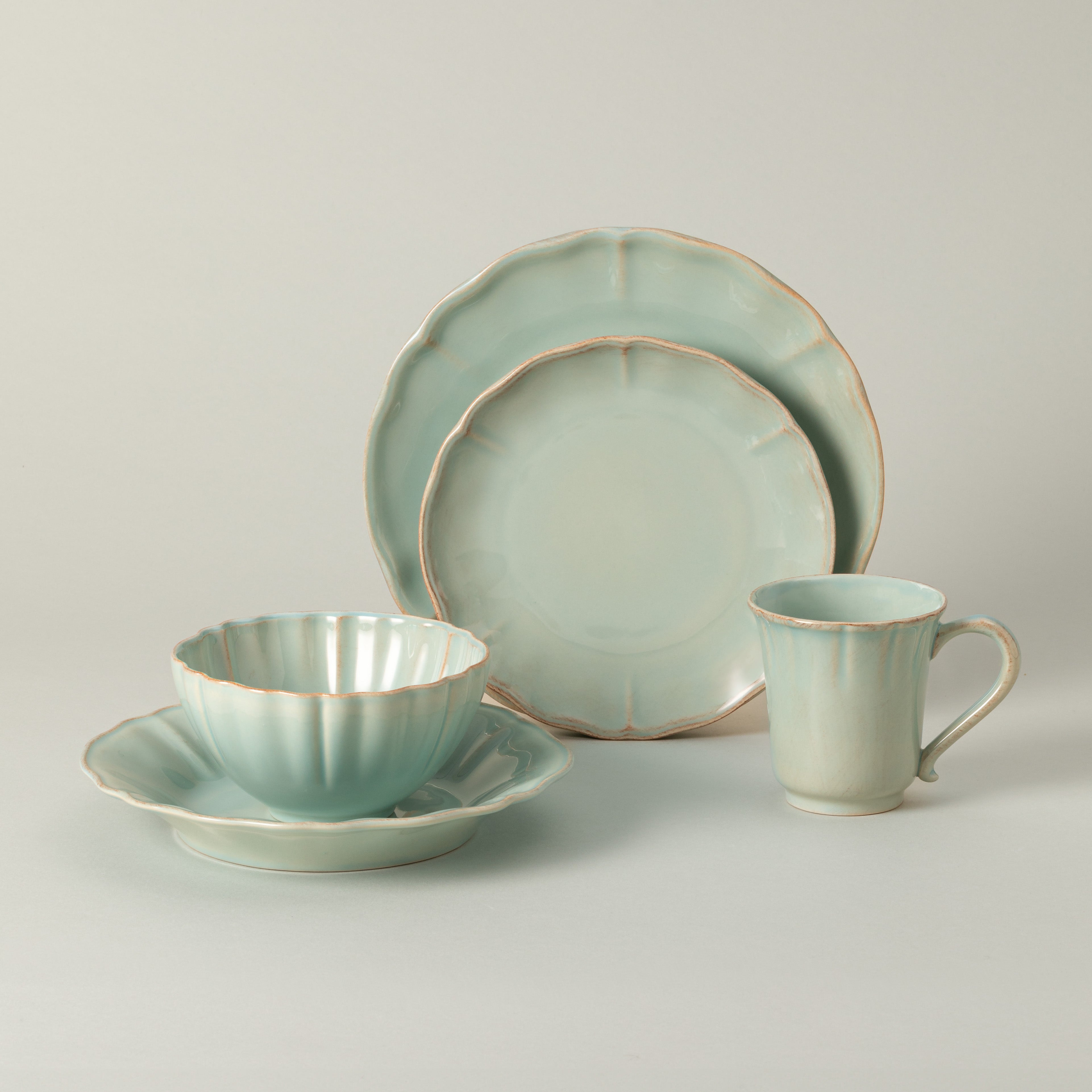 Available in white and turquoise, the collection is designed to mix and match with other pieces from the collection, allowing you to create a personalized table setting. The soft colors complement a wide variety of dining styles, whether for special occasions or daily meals, bringing a sense of comfort to any setting.