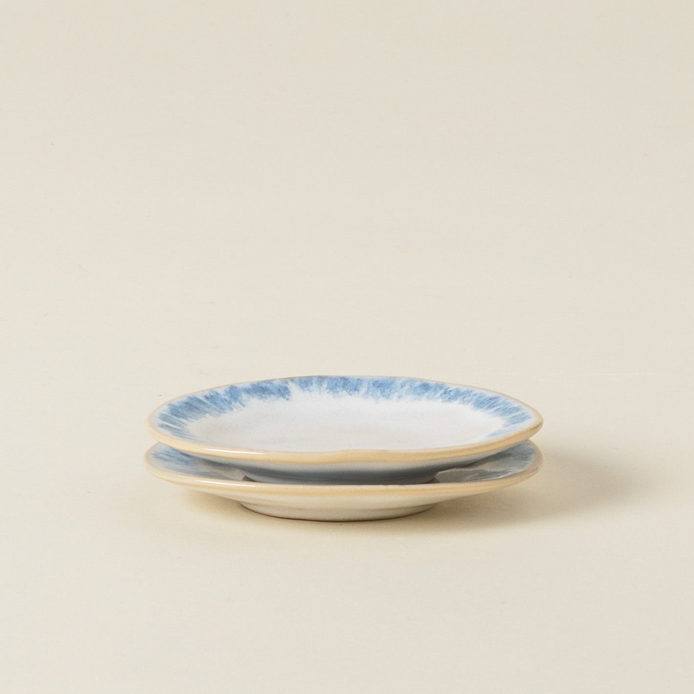 - Presents a reactive glaze that is attentively applied to the edge, allowing it to drip naturally down the sides, resulting in a finish that makes every piece unique. Glossy finish.