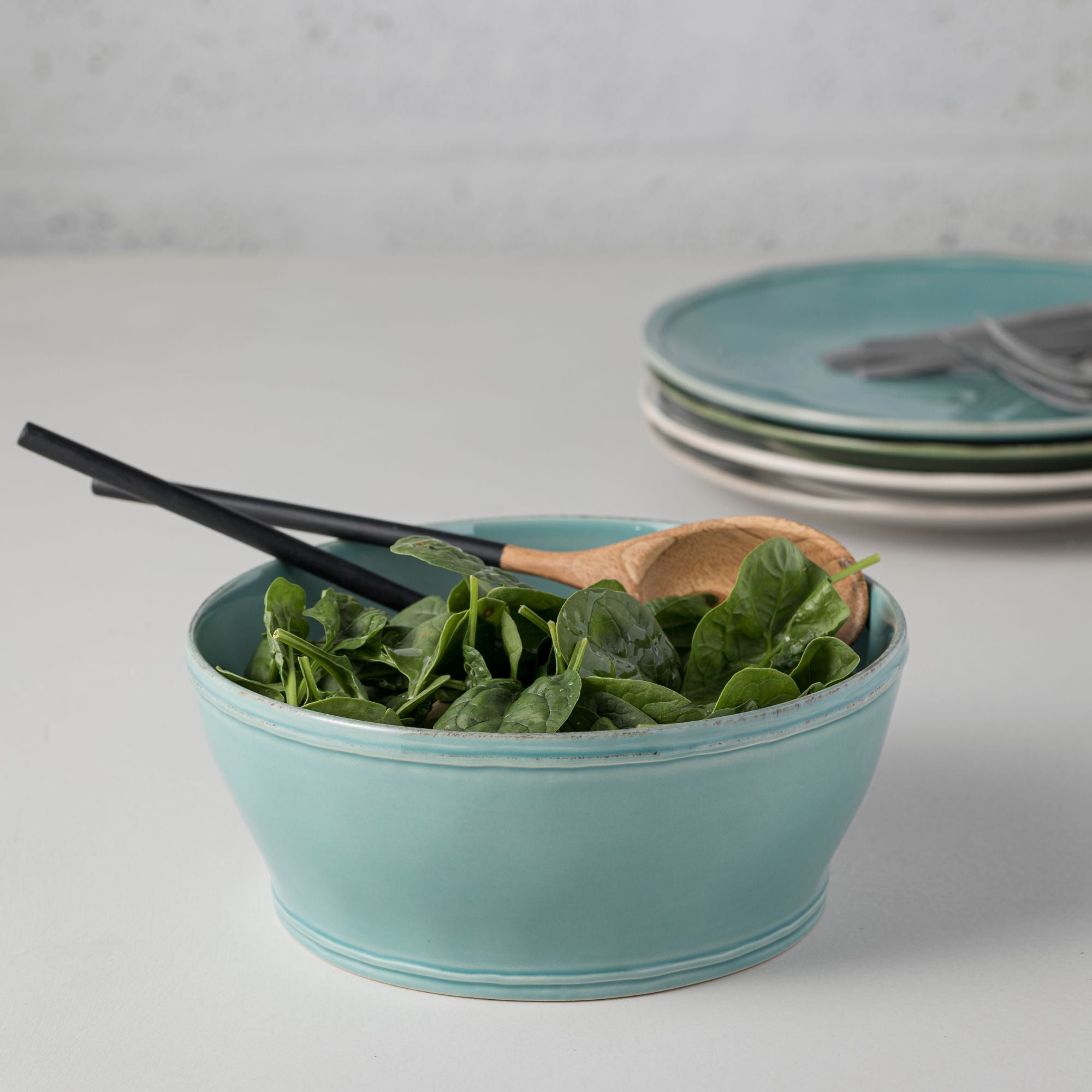 Available in white, dove grey, forest green, paprika, and turquoise, this collection brings a joyful touch to your table. The Cloud White version is particularly versatile, easily complementing other pieces in these colors.