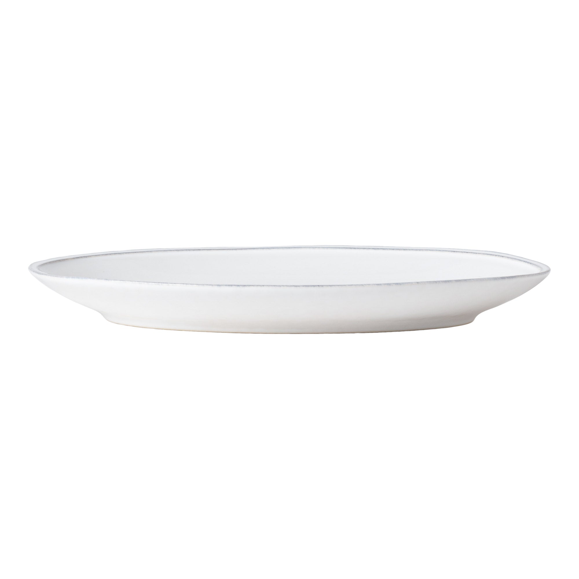 The Friso Oval Platter, crafted from fine stoneware in Portugal, features a simple and elegant design. Its fluted, hand-painted rim gives it a distinctive artisanal finish.
