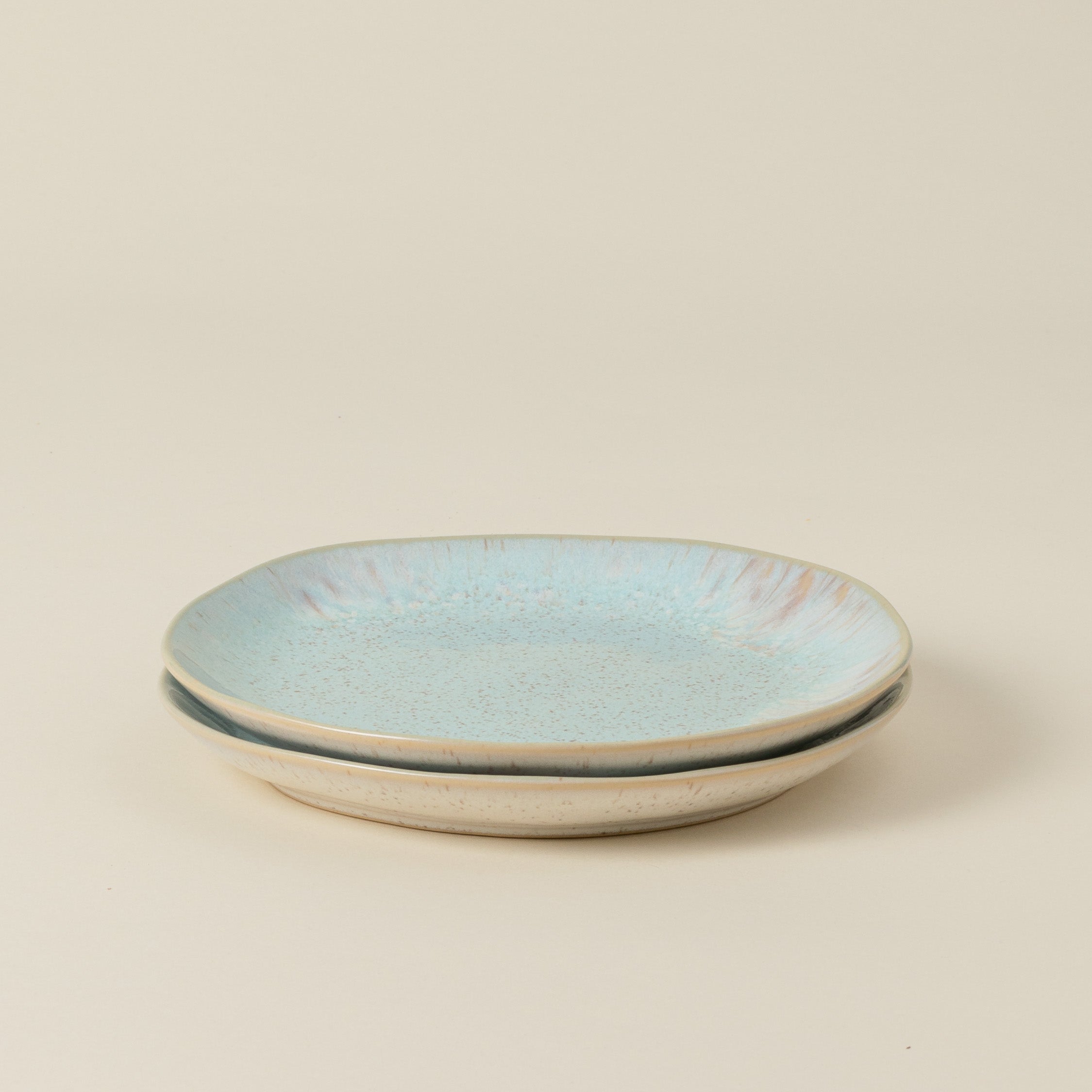 The Eivissa Salad Plate reflects the laid-back essence of the island of Eivissa with organic shapes and a reactive glaze finish.