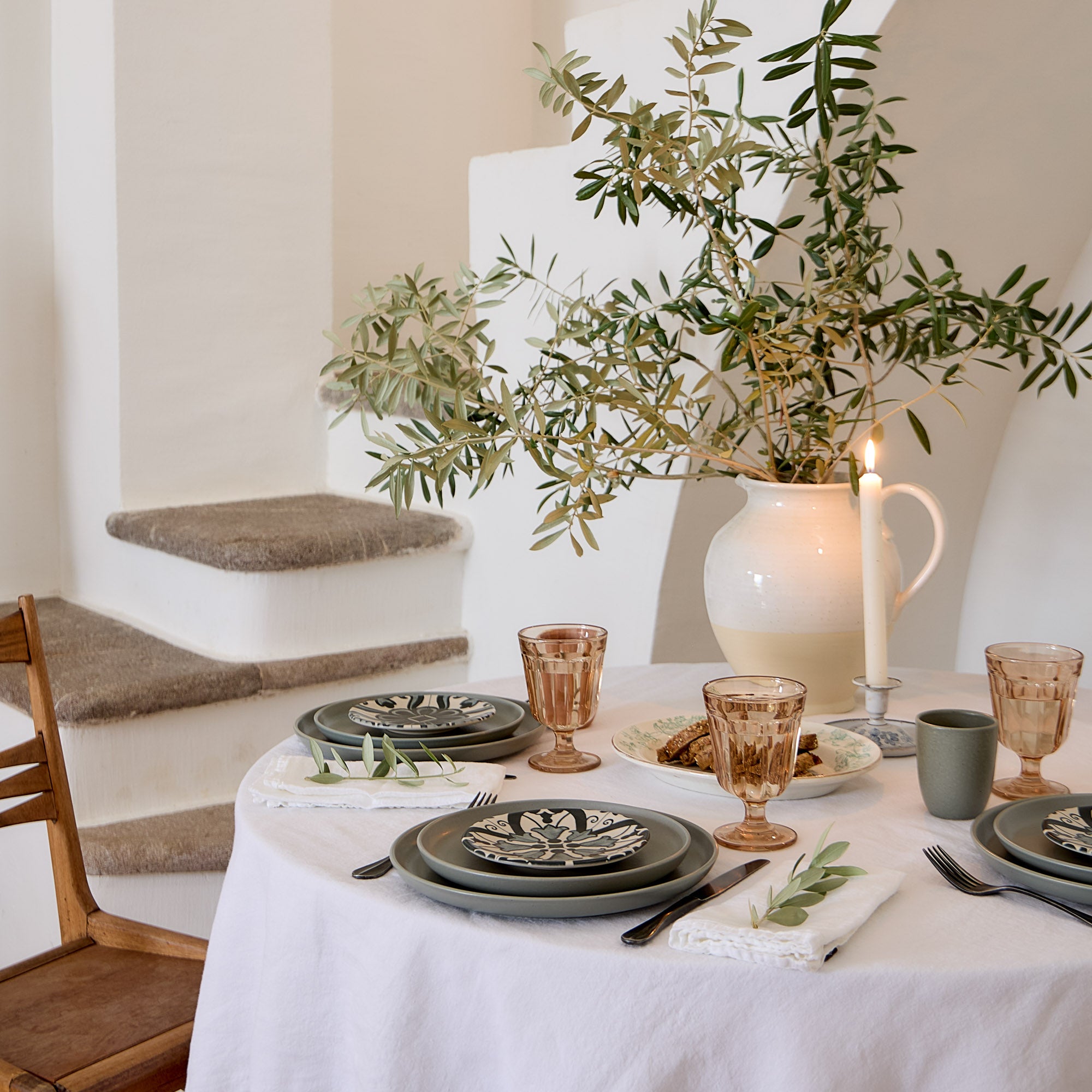 Available in a selection of soft pastel tones, such as Vanilla (beige), Marshmallow (pink), Monterosa (beige and brown), Oyster Grey (grey), Chestnut (light brown), Salt (white), and Artichoke (green), as well as more intense shades like Cayenne (red) and Seed Grey (grey). Additionally, the collection offers seasonal options, such as Christmas Tree (beige with a festive motif). These tones bring a calm, harmonious vibe to the table. Use the soft colors alone for a nostalgic, romantic feel, or combine them for a cozy, comforting setting.