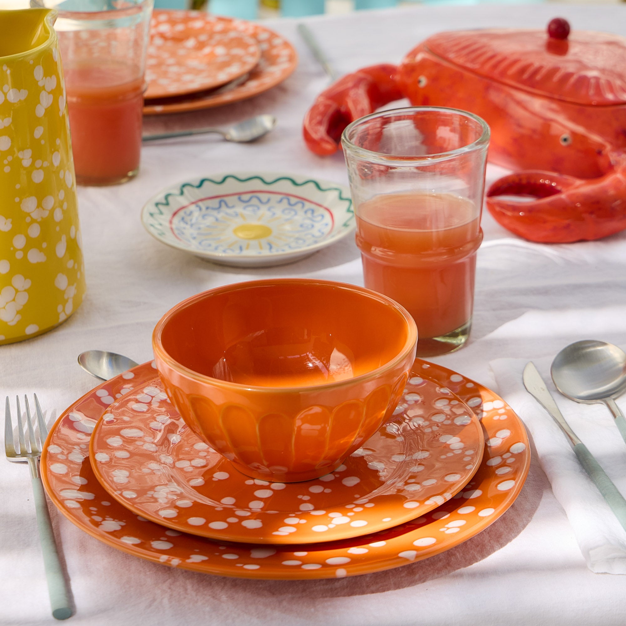 Brighten your kitchen and table with the playful charm of the Rafaela collection. Each hand-applied splash of paint adds a unique, carefree touch to every meal. Available in four bold colors, Rafaela pieces are perfect for mixing and matching or adding a pop of personality to any table setting. From dinner, appetizer, and salad plates to versatile oven-to-table bakers, this collection transforms everyday dining into a vibrant, memorable experience. The technique used to decorate Rafaela demands the artisan’s full attention and precise, delicate gestures. Each handmade splash is carefully poured onto the piece, making every item truly one of a kind. Perfect to combine with Summer Bliss pieces. Fine stoneware. Made in Portugal.